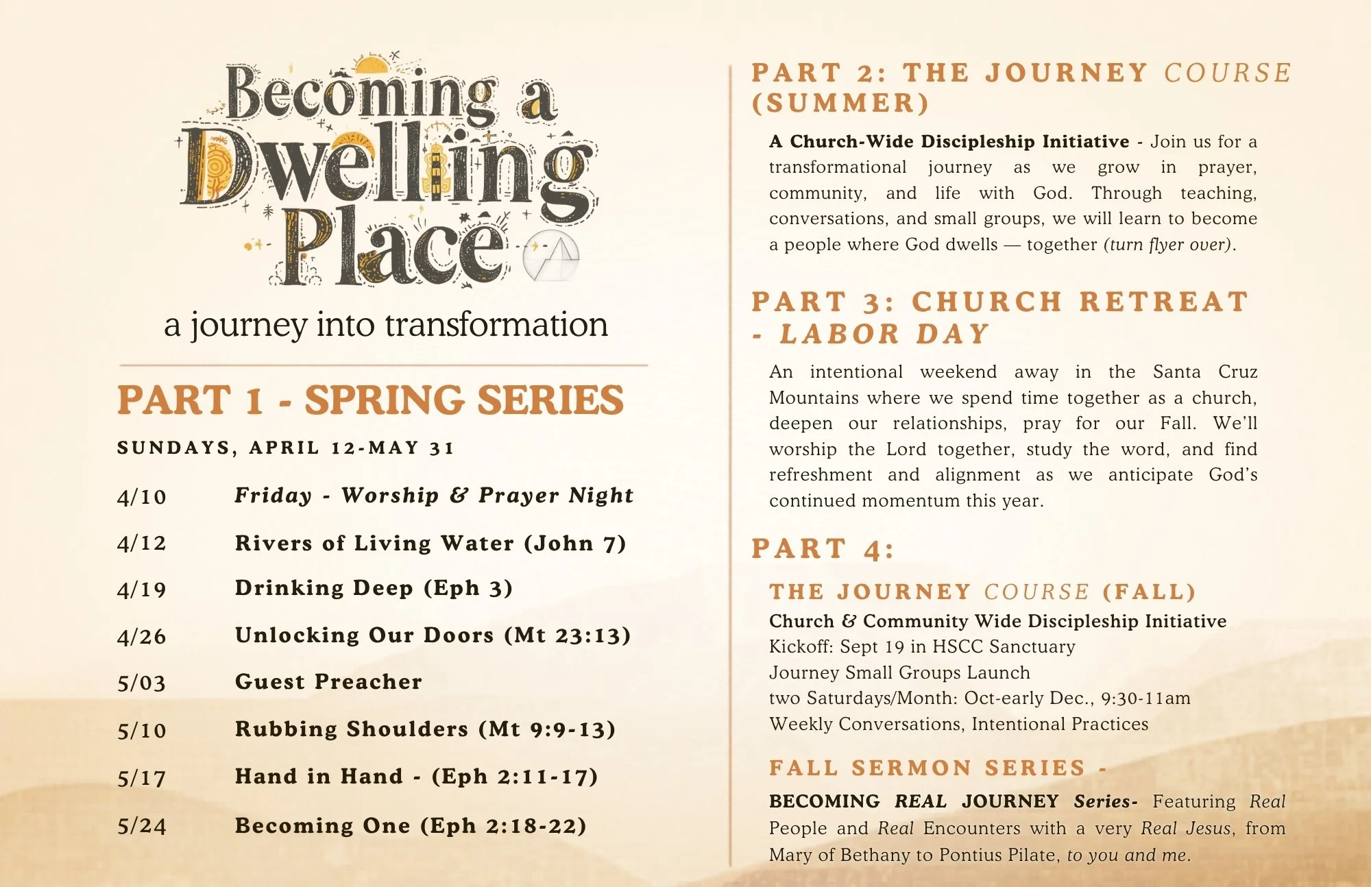 This Sunday, April 12th, we're launching a new sermon series, Becoming a Dwelling Place that operates in sync with our new church-wide discipleship initiative called The Journey.